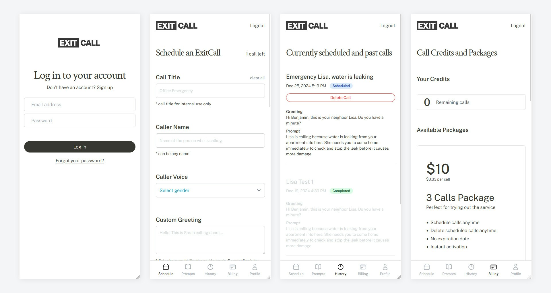 ## ExitCallについて "ExitCall"は、悪いデートから優雅に退出するためのパーソナルな解決策です。 ### 主な機能 - **AIボイスアシスタント**: 事前に設定した「友達...