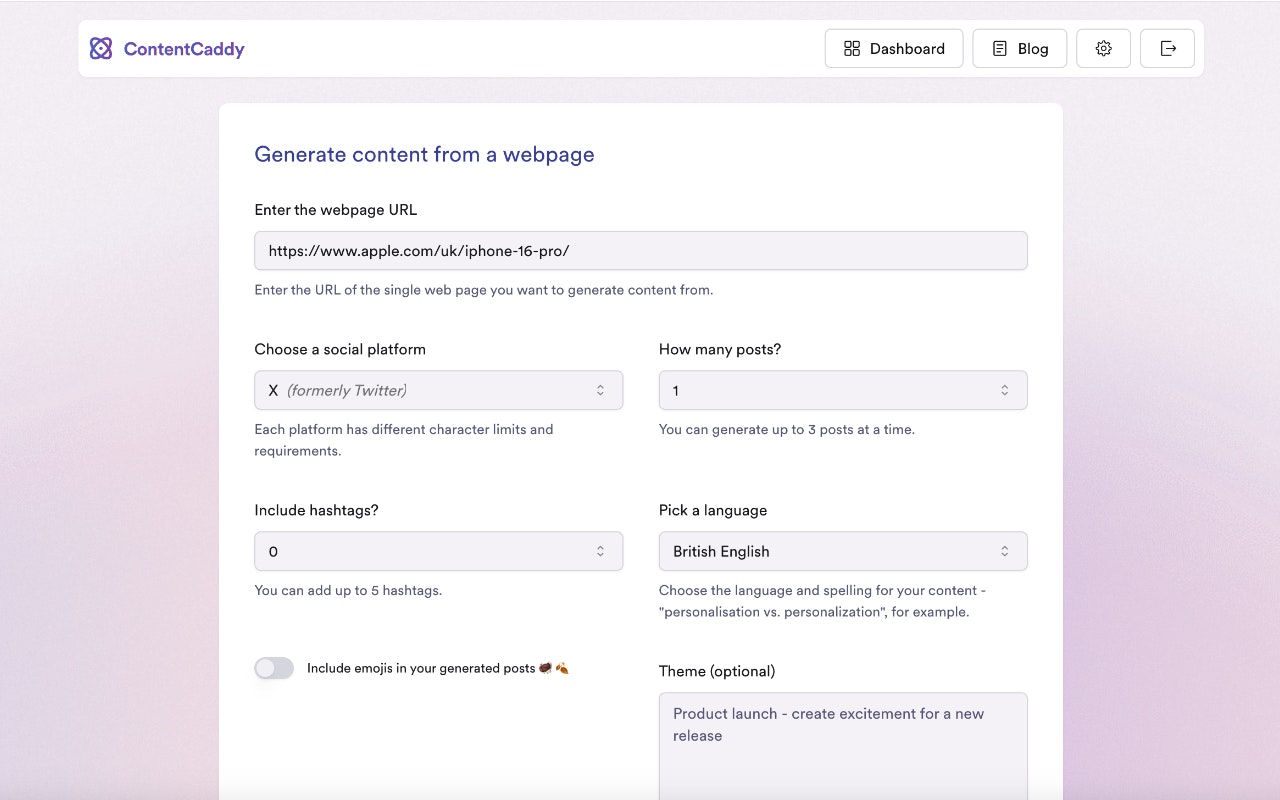 ウェブサイトのコピーから瞬時にソーシャルメディア投稿を作成
