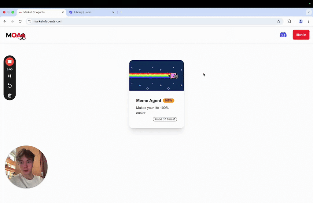 ## プロダクト概要 このプロダクトは、 - **AIミームエージェント** です。あなたのためにミームを生成し、楽しむことができます。 - 完全に**無料**で利用可能です。 - AIエージェ...