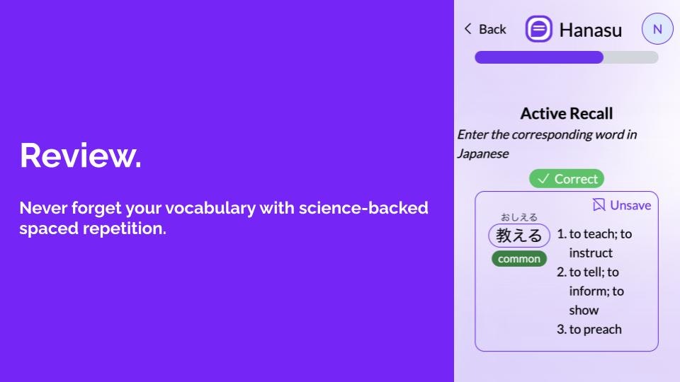 ## Hanasuの特徴 - ネイティブスピーカーのように自然な会話を通じて言語を学習 - トピックを選んで、自由に会話することが可能 - ワンタップで辞書機能、ダブルタップで翻訳機能を活用 -...