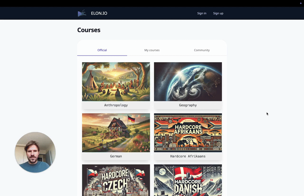 ## 概要 Elon.ioは、AIによって生成された言語コースを通じて、迅速かつ深く言語を学ぶことができるプラットフォームです。すべてのコンテンツは無料で利用可能で、有料版ではより多くの質問が可...