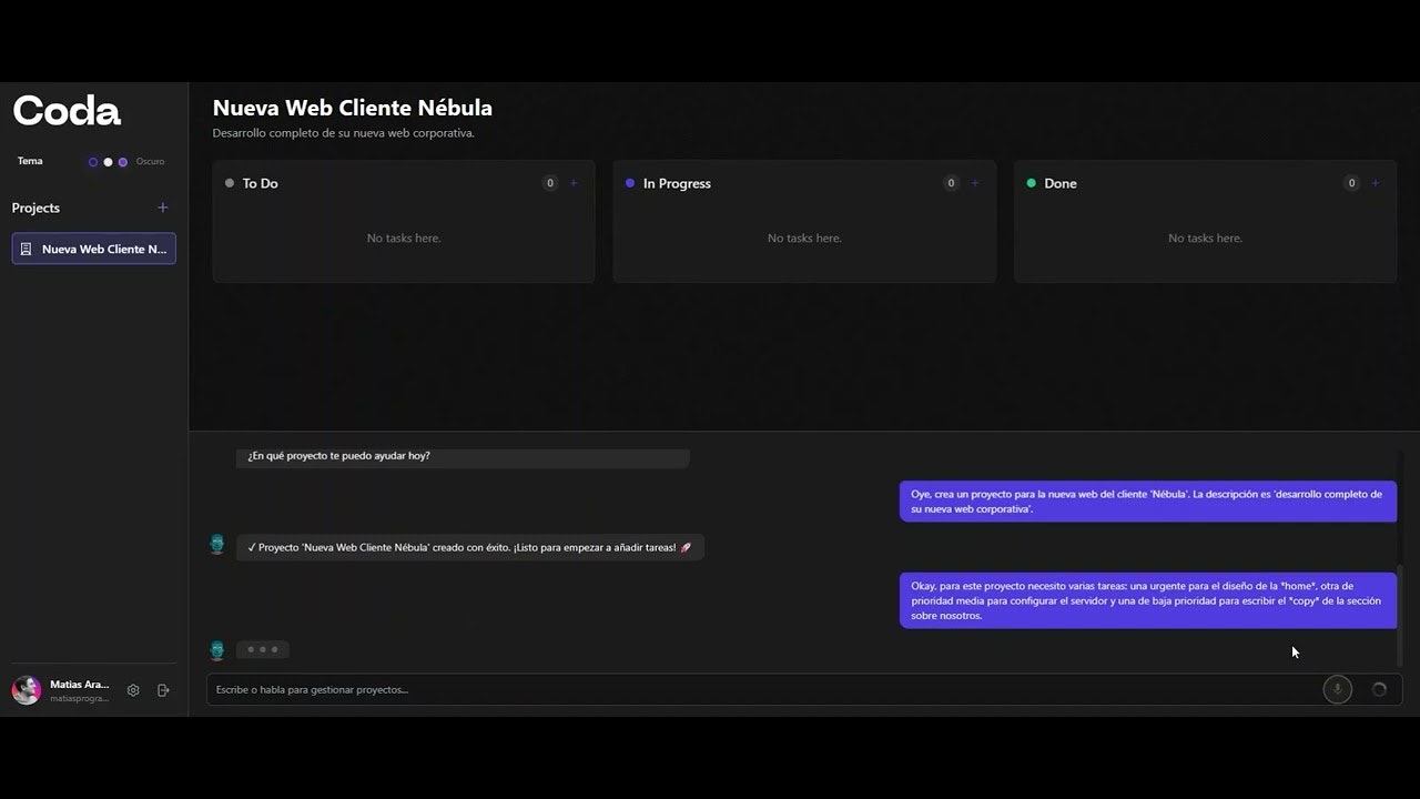 ## CODAのご紹介 CODAは、会話をプロジェクトに変換することができるAIアシスタントです。スペイン語と英語の両方に対応しており、自然言語でのやり取りを可能にします。これは、 - **会...