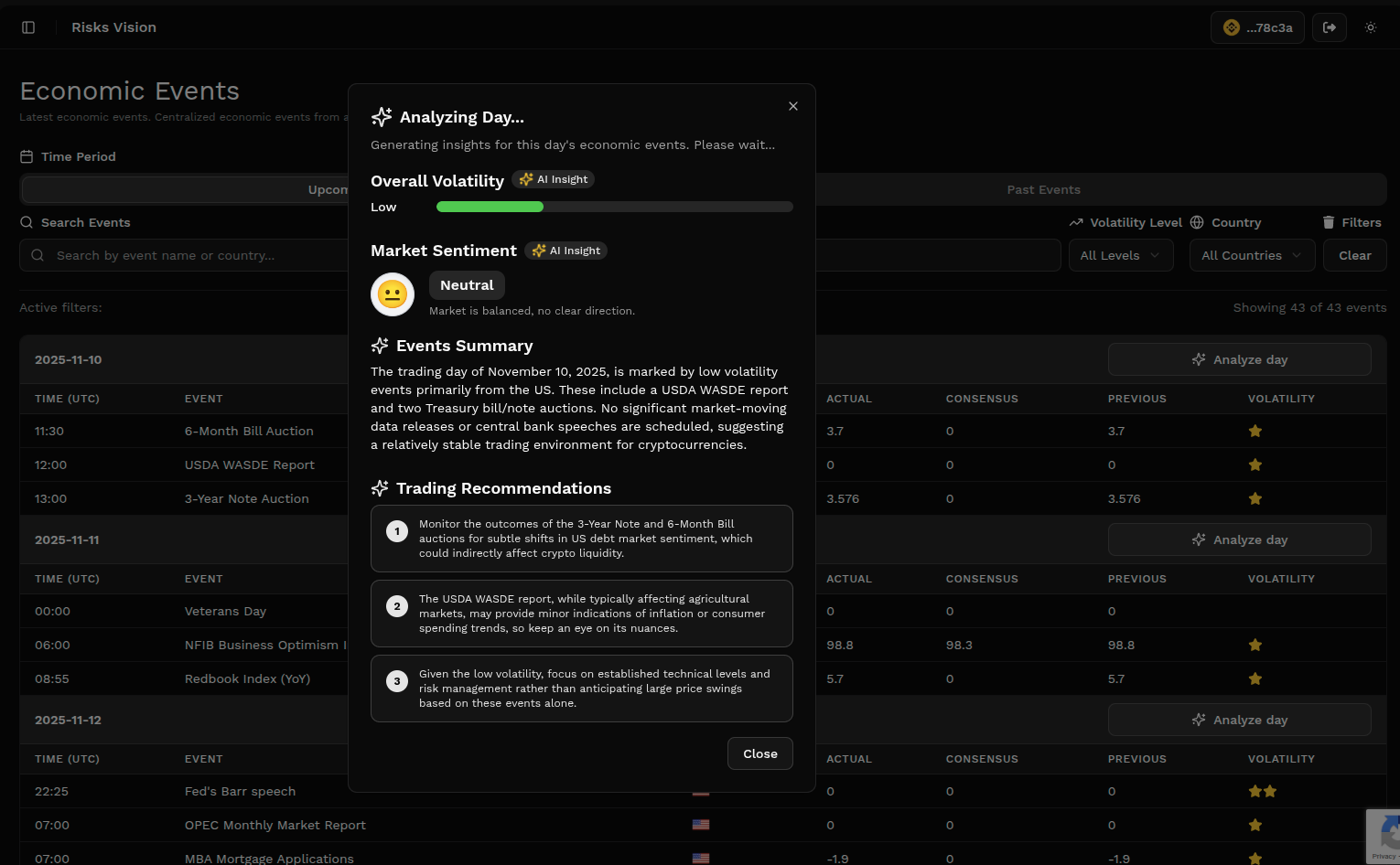 Risks Visionは、感情に左右される高リスク取引を抑えるAIコ-pilot型の分析ツール。リアルタイムのブロックチェーンデータ、Chainlink等のオラクル・フィード、世界経済イベント...