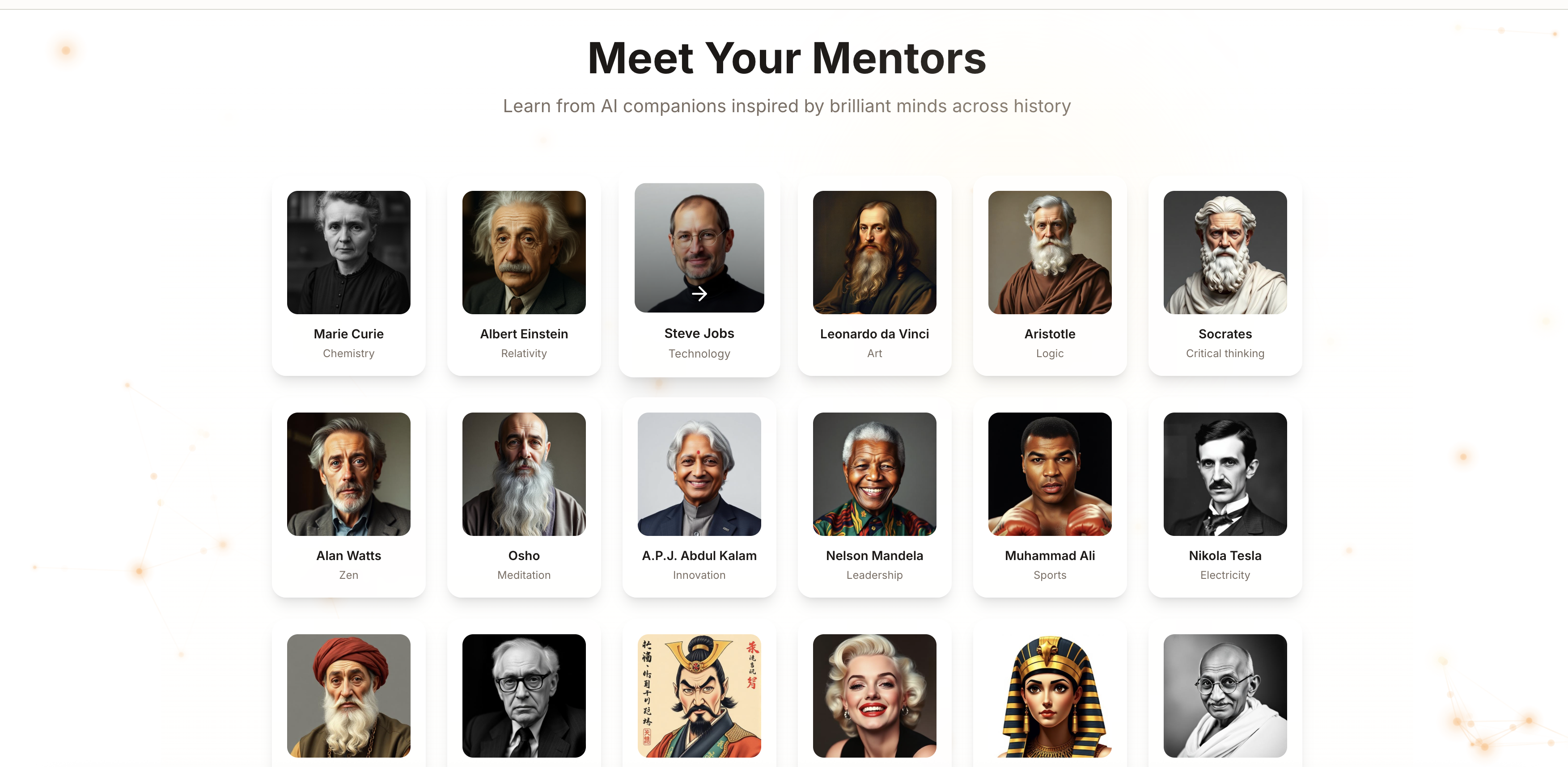 ## CurioPalの概要 - 歴史上の偉人を模した25名以上のAIメンターと対話し、ELI5からエキスパートまで幅広いレベルで学習をサポート - 複数メンターの視点を比較可能。引用付きの説明...
