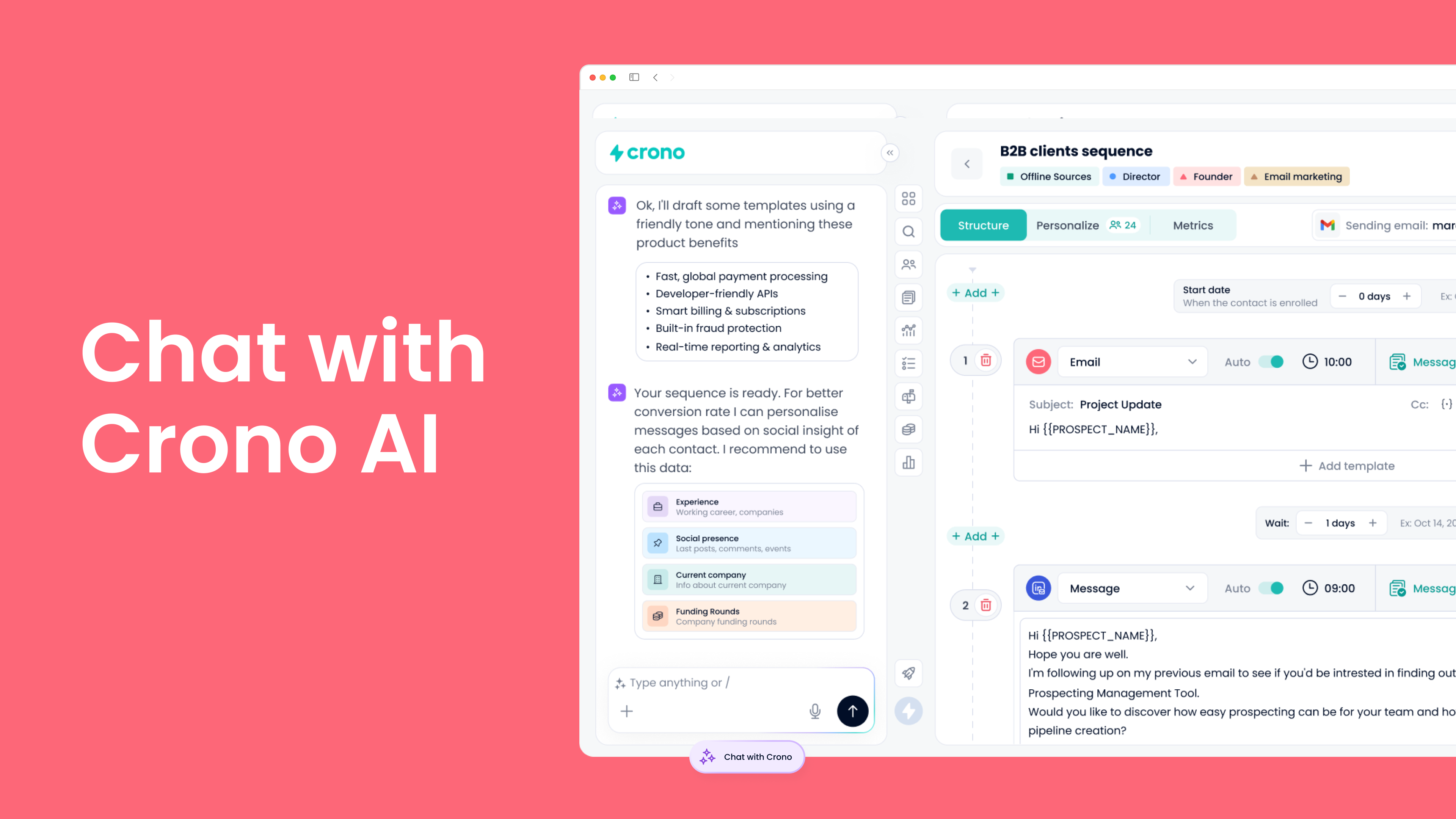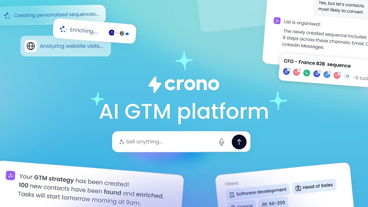 ## 概要 Crono 2.0は、AIネイティブ層をCrono 1.0に組み込んだ新しいGTM実行プラットフォームです。欧州の200社以上のB2Bセールスチームが活用し、SMBのアウトバウンド課...
