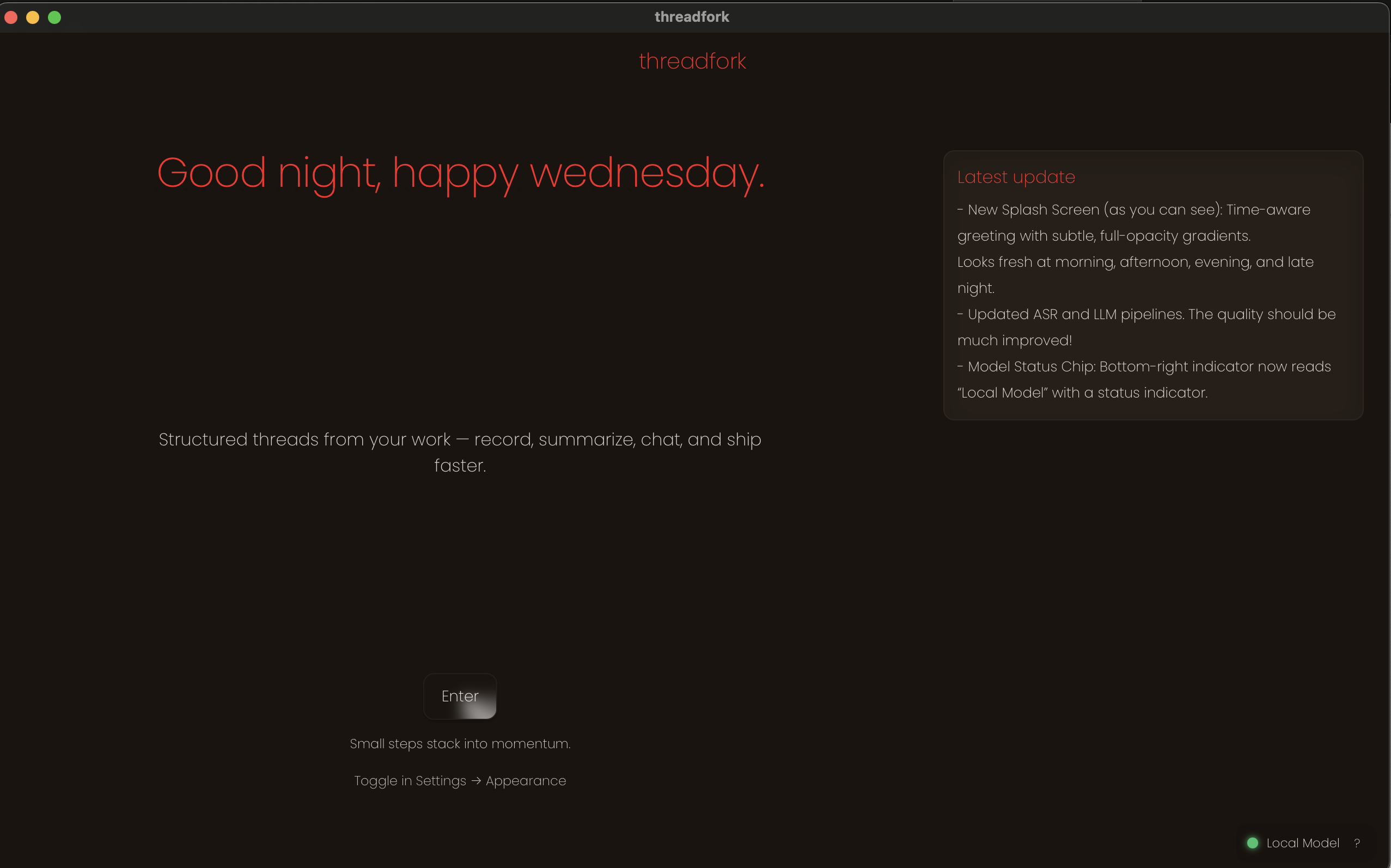 threadforkは、ローカルで完結するプライバシー重視のAIアシスタント。Mac対応、M1以降。会議の録音をローカルで文字起こし、組み込みのローカルLLMで要約・要点抽出・質問対応が可能。シ...