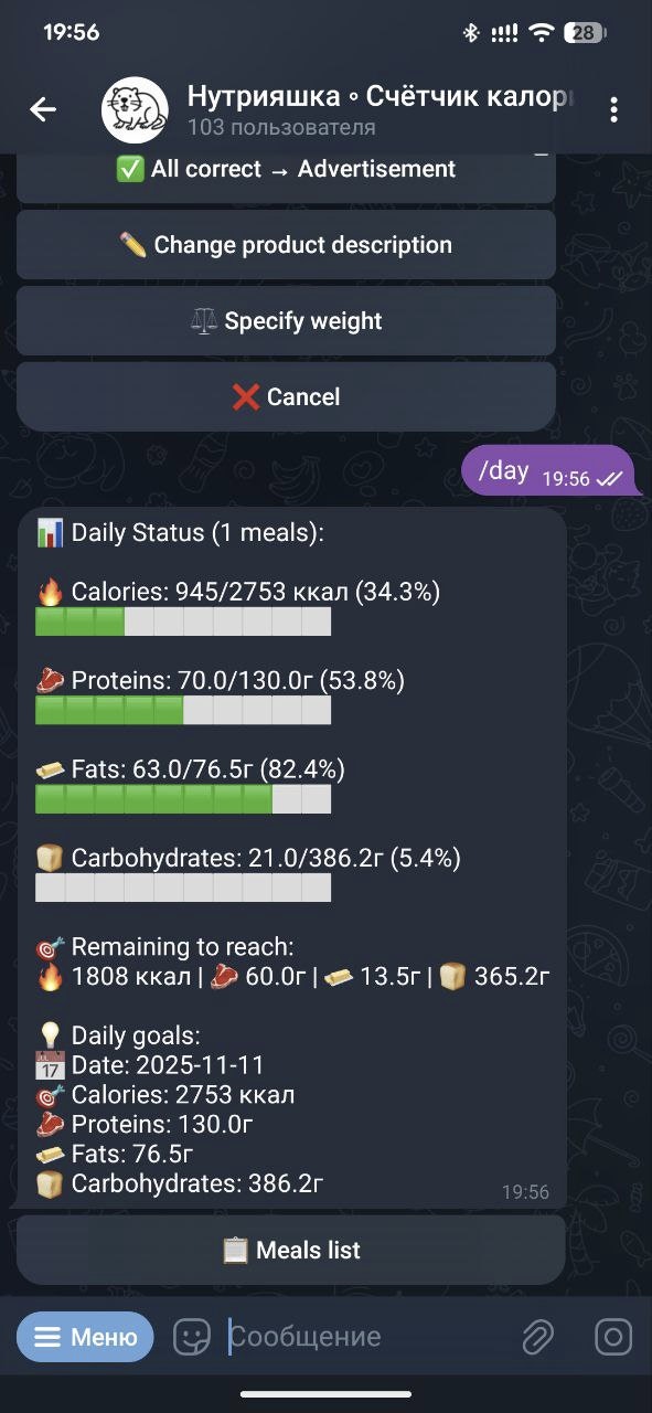 Nutriyashka は Telegram 上で動く AI 栄養コーチ。写真を撮って送るだけで、カロリー・タンパク質・脂質・炭水化物を即座に算出し、アプリ不要・手入力不要の状態で栄養情報を提供...