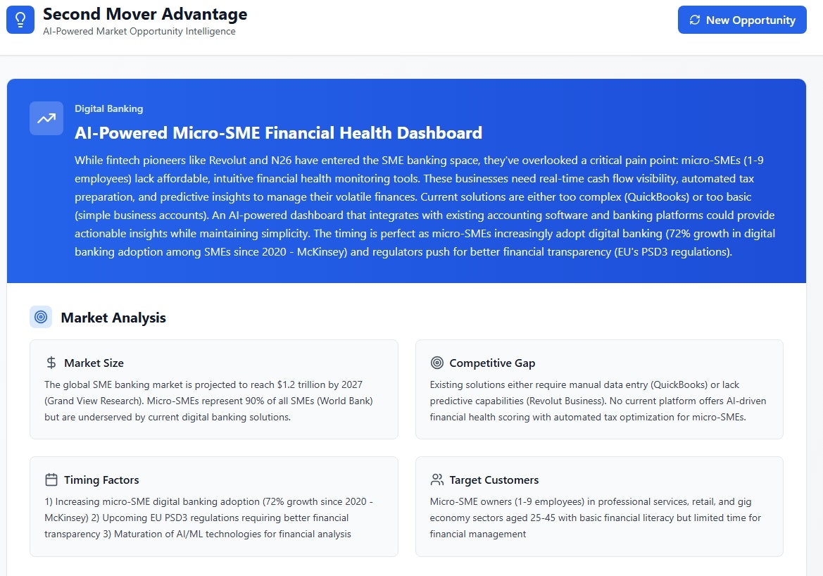## 概要 遅参入でも勝てる戦略を生み出すツール。ファーストデリバリーの過熱した期待を避け、既存市場のシグナルを分析してノイズを排除。再現性の高い戦略を即座に提示し、低リスクでスマートなローンチ...
