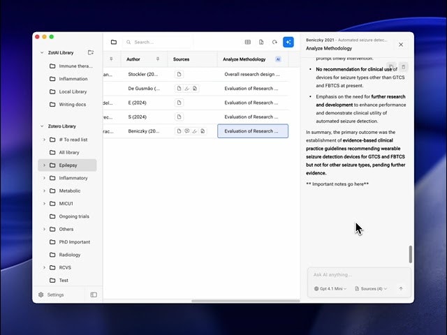 ## 概要 ZotAIはPDF研究をサポートするインテリジェントリサーチアシスタント。Zotero連携またはPDFアップロードで、即時の要約・ハイライト抽出・構造化された洞察テーブルを生成し、M...