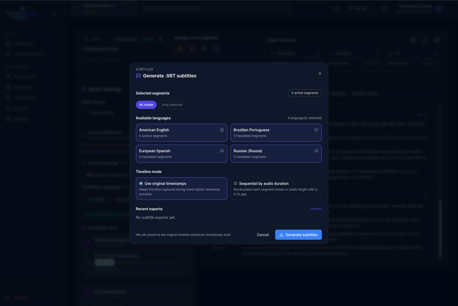 TransVoicelyは、AIを活用したエンドツーエンドのオーディオパイプラインを提供するプラットフォームです。リアルタイムでの音声キャプチャ・文字起こし・翻訳・音声合成・配信を、低遅延で実現...