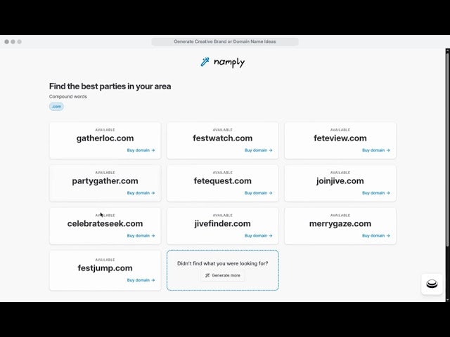 ## 概要 Namplyは、クリエイター・創業者・インディー開発者向けの無料AIブランド名・アプリ名生成ツールです。アイデアを説明するだけで、短く力強くブランド性のある名前を即時に提案します。各...