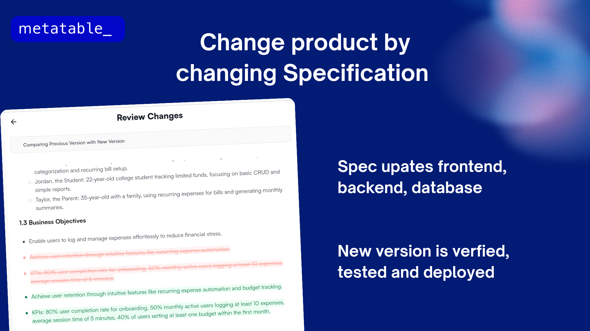 仕様駆動開発を軸にした、完全な本番アプリを仕様から生成するAIプラットフォーム。デプロイ済みのアプリとしてデータベース・バックエンド・フロントエンドを自動構築・公開、コードの所有権はユーザーにあ...