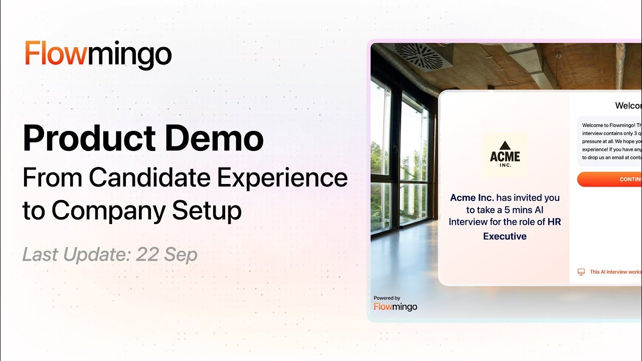 ## 概要 Flowmingoは、非同期AI面接で時間を節約しつつ採用判断を改善するソリューション。無料・永久利用可能で、業界をリードする多くのチームから信頼されています。 ## 特長 - 構...