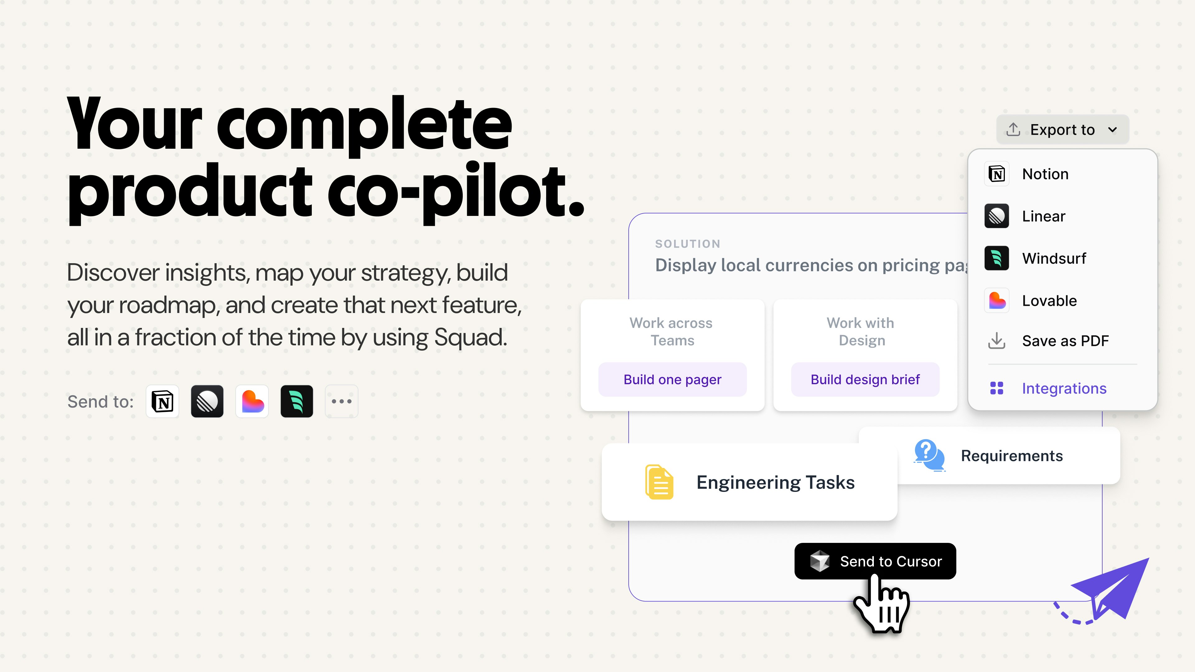 ## 概要 Squad 3.0は創業者・ビルダー・プロダクトチーム向けのAIプロダクトマネージャー。ビジネス目標・分析・ユーザーフィードバックを取り込み、推奨戦略と成長するライブロードマップを返...