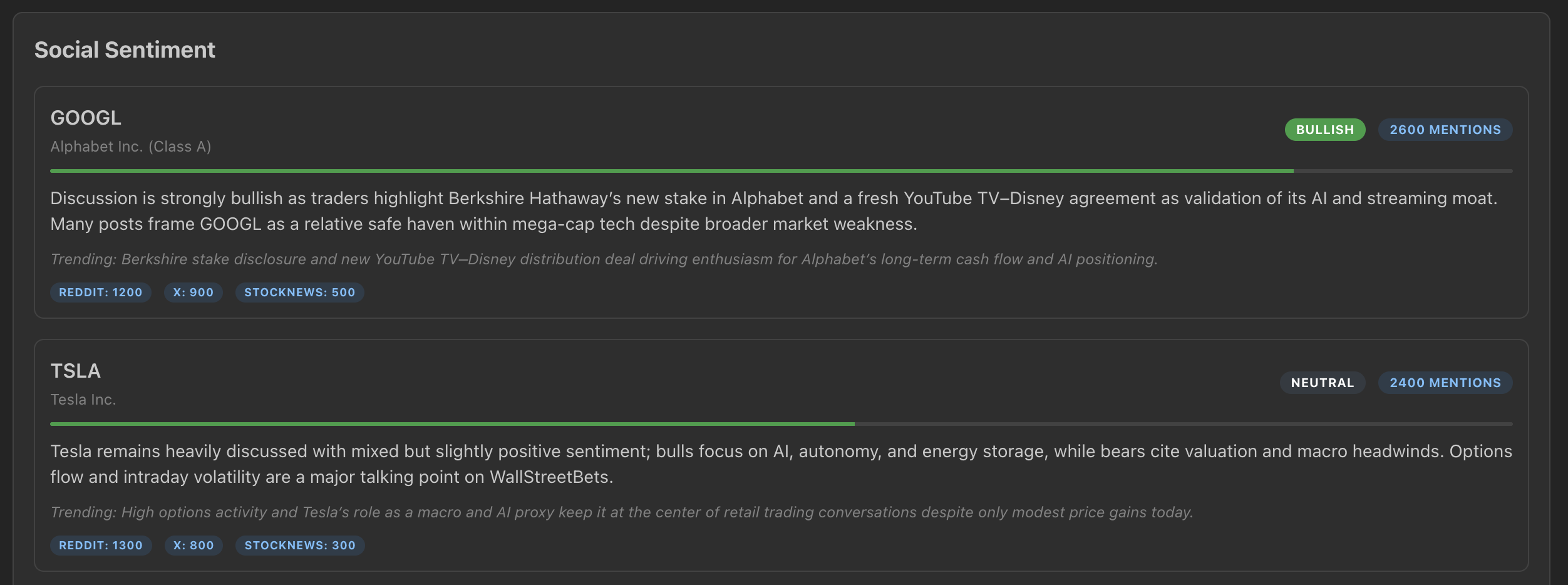 ## 概要 AI搭載の日次株式シグナルを提供します。ニュース・トレンド・センチメント・ボラティリティ・テクニカルパターンをリアルタイムで分析し、日々6〜10件の高確率トレード機会を抽出。長時間の...