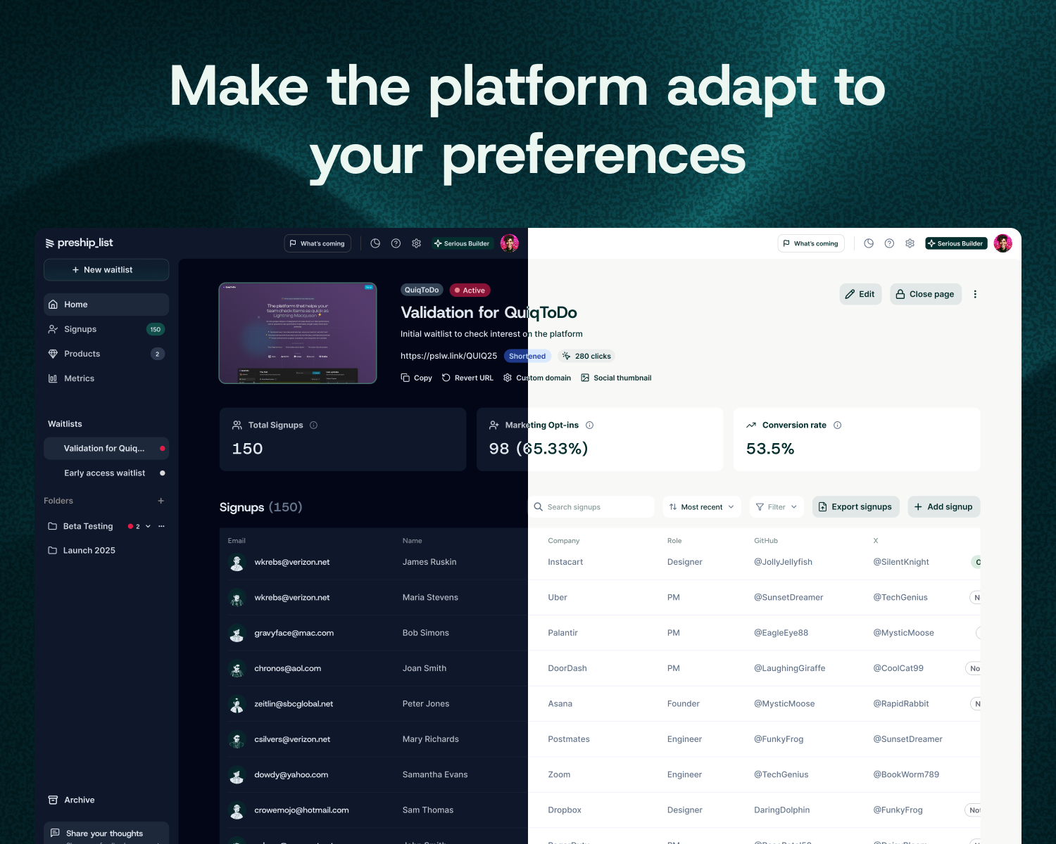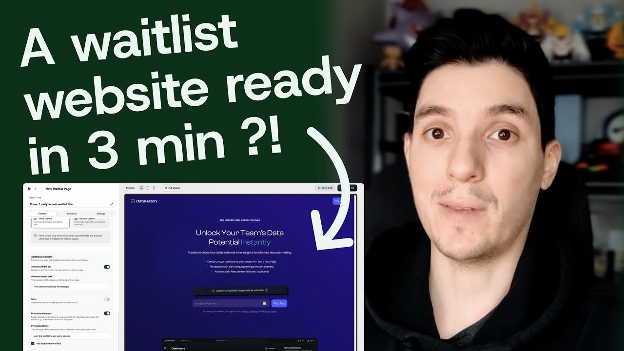 ## 製品概要 - 5分未満で、製品の雰囲気に合うモダンな待機リストサイトを作成 - フォーム・ポップアップ・完全ブランドサイトを一体化したノーコードツール - 完全に動作するフォーム、AIコピ...