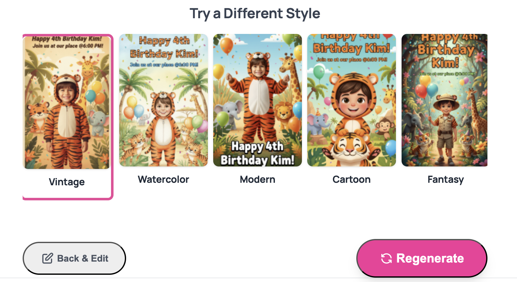 ## 概要 Big Day CardはAIを使って、1枚の写真から個別化されたテーマ別の誕生日招待状を自動生成します。写真をアップロードし、テーマ・デザイン・スタイルを選択、細部をカスタマイズす...