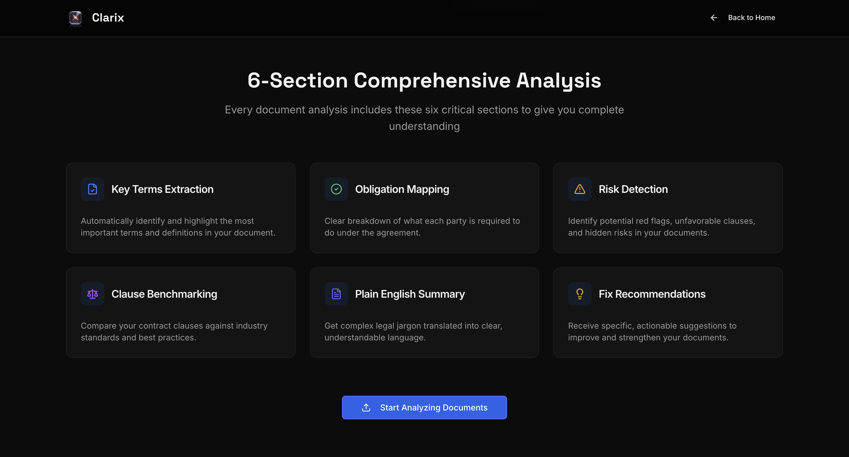 Clarixは、AIを使って複雑な文書を瞬時に要点・要約・洞察へと抽出するドキュメント分析ツールです。契約書・NDA・合意書などをアップロードしてリスク検知と推奨を得られ、複数フォーマットに対応...