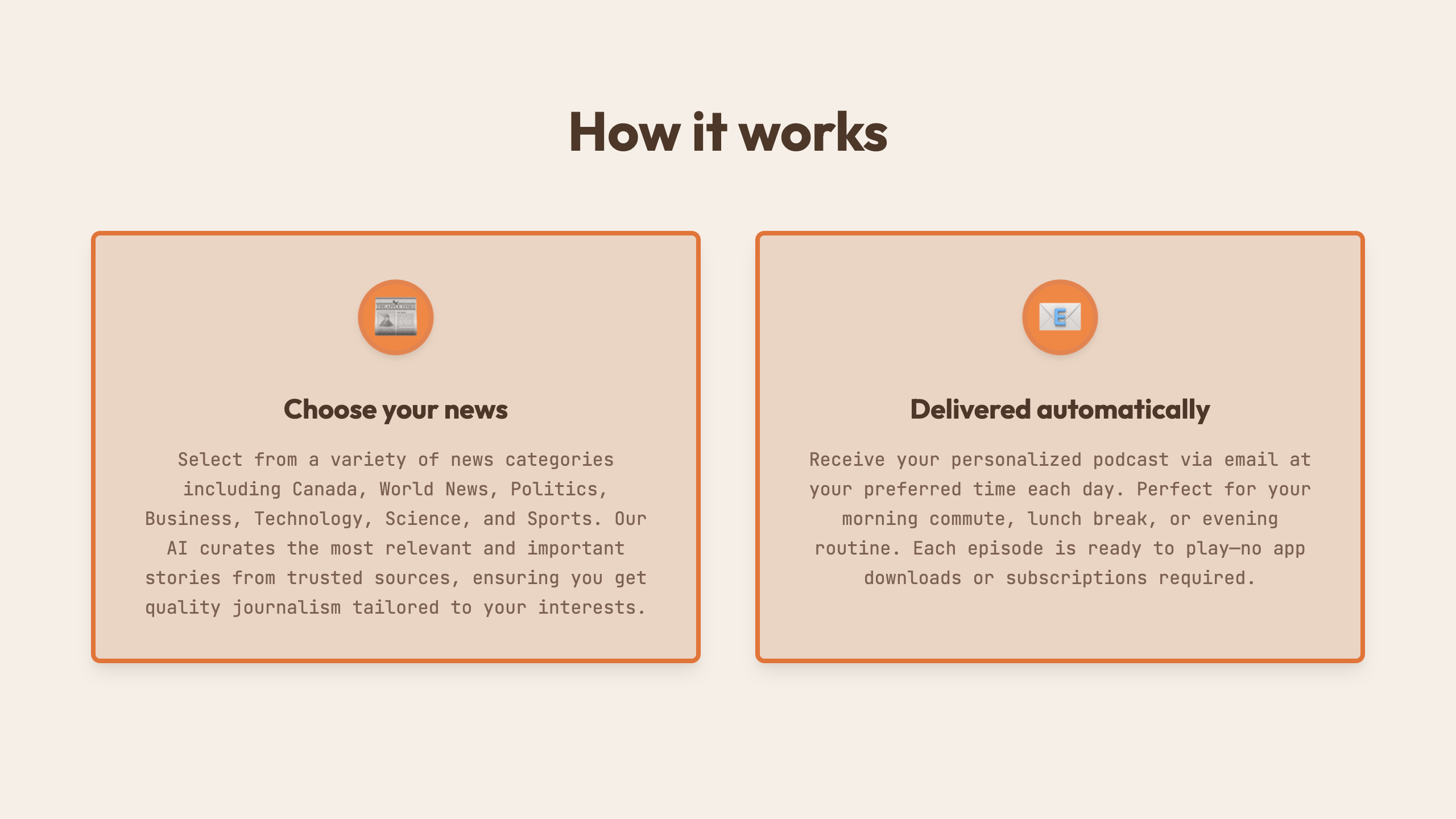 ##概要 BriefCommuteは、受信箱に日刊のニュースポッドキャストを届けるパーソナライズ型サービスです。AIがあなたの関心に合わせてニュースをキュレーションし、通勤中に聴ける形でその日の...