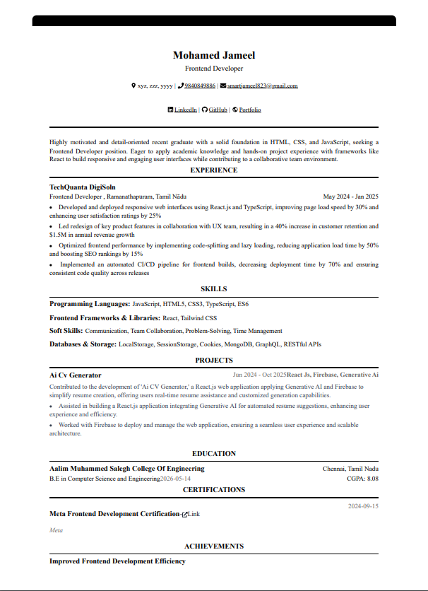 あなたのニーズに合わせて履歴書を作成するAI搭載の履歴書ビルダー。