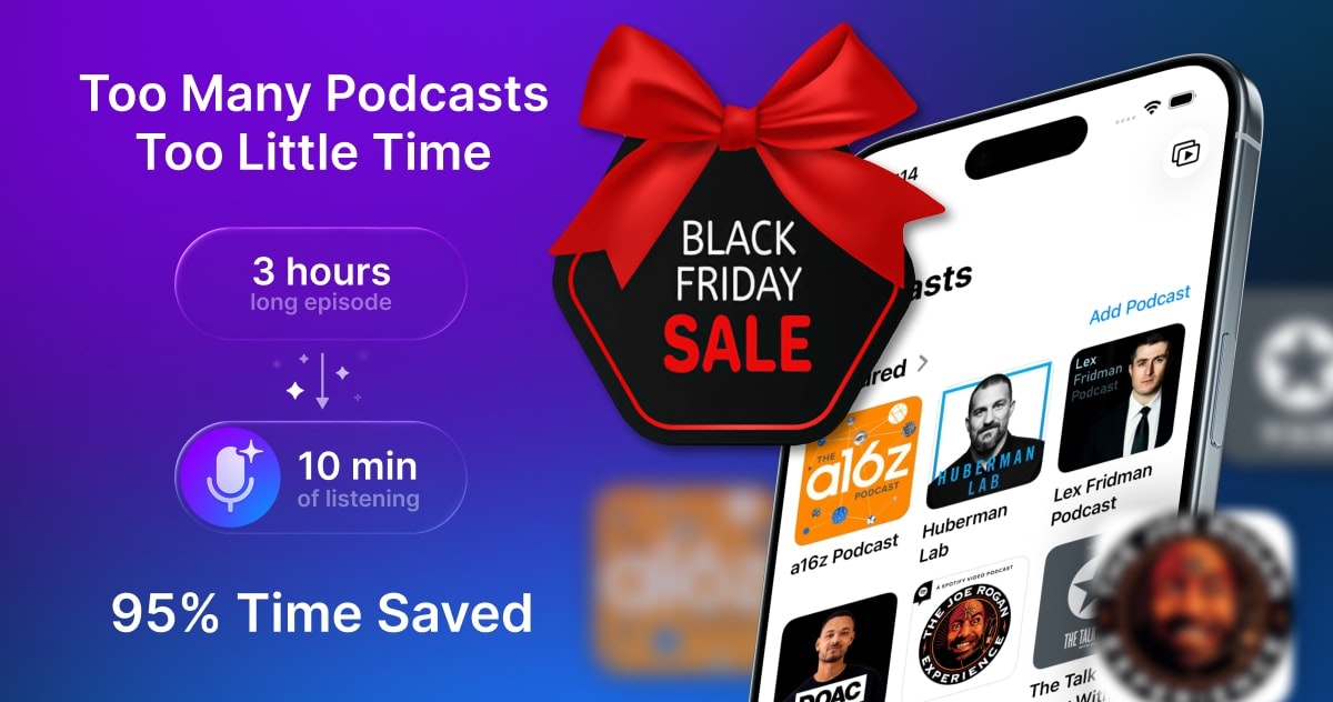 ## 製品概要 Shortcastは長時間のポッドキャストを短く、聴きやすい高品質な音声要約に変換するサービスです。ブラックフライデーセールとして、全てのサブスクリプションプランが70%OFFと...