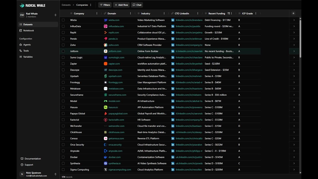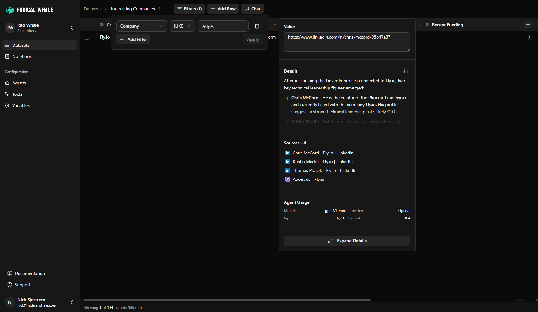 ## 概要 Radical Whaleは、AIネイティブなデータワークスペースであり、ユーザーが独自のLLMキーやAPI、そしてエージェントを使ってデータセットを構築、強化、自動化できるプラット...