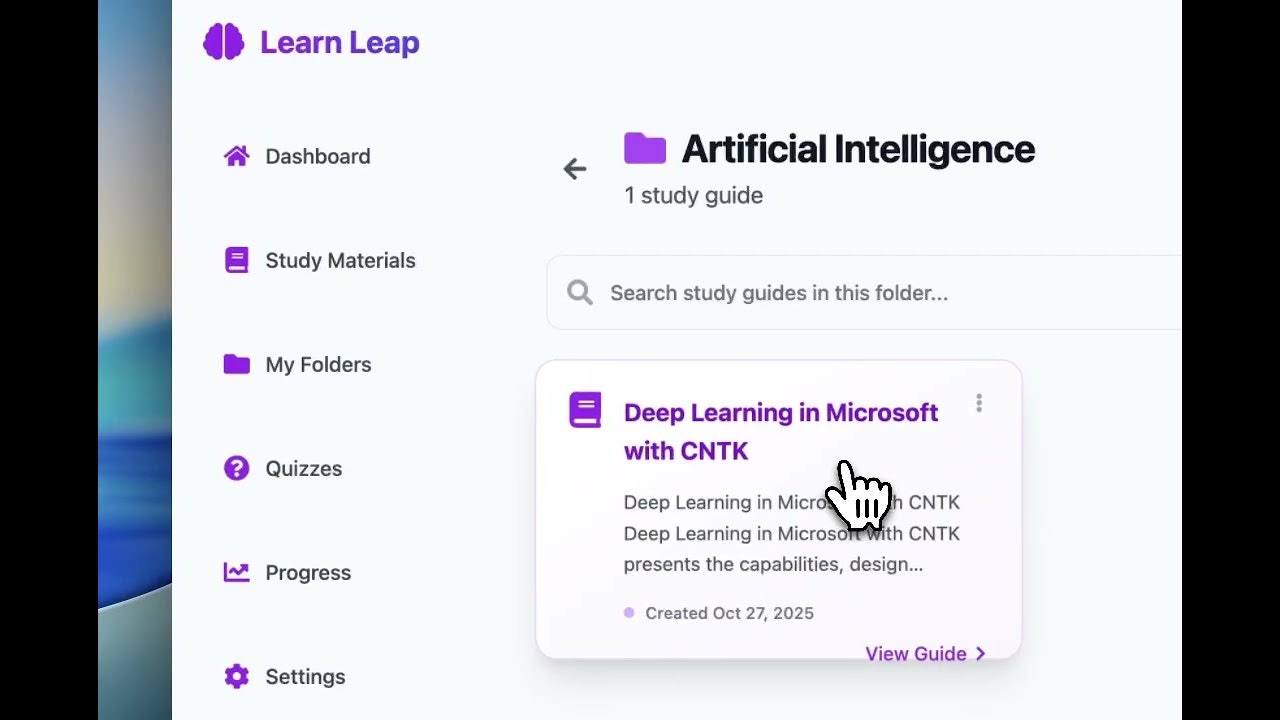 ## プロダクト概要 Learn Leapは、ノートを能動的な学習に変える革新的なプラットフォームです。AIを活用した機能を駆使して、以下のようなメリットを提供します。 - **学習ガイドの生...