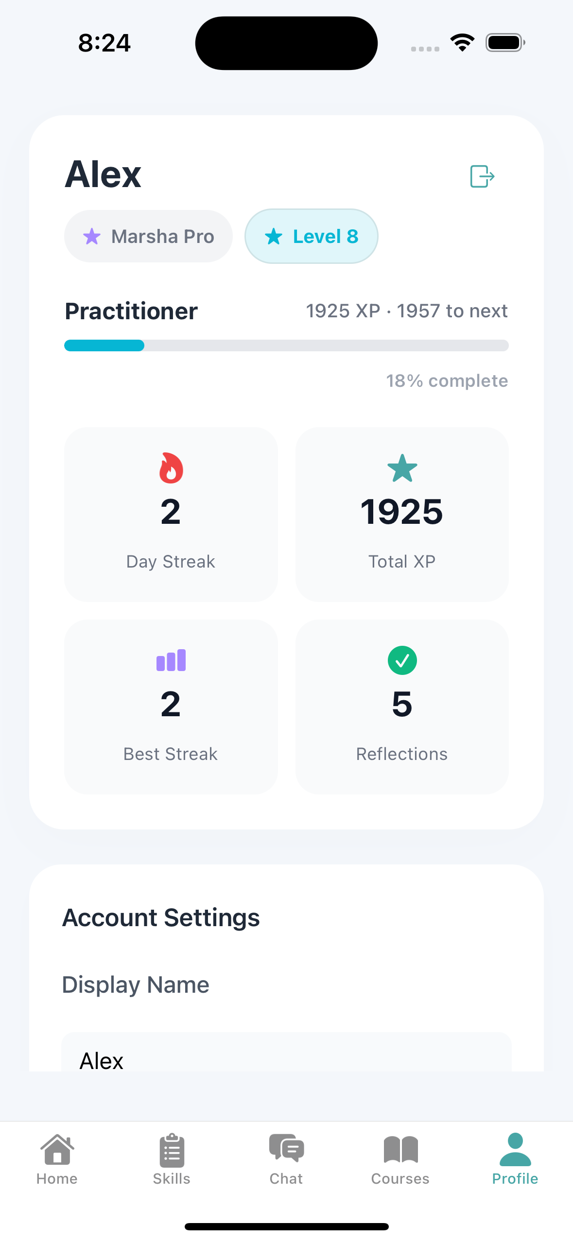 ## 概要 WithMarshaは、日々の反省やAIコーチとのリアルな会話を通じて、感情的なレジリエンスを高めるためのスキルを実践できるプロダクトです。 ## 特徴 - **DBT理念に基づい...