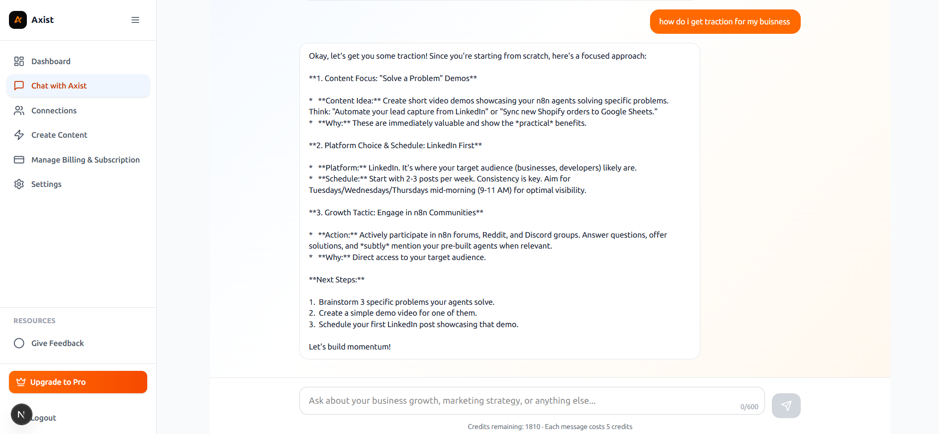 ## Axistとは Axistは、マーケティング活動をサポートするAI共同創業者です。日々のアクション可能なタスクや週次目標、投稿用のコンテンツを提供し、マーケティングの意思決定を容易にします...