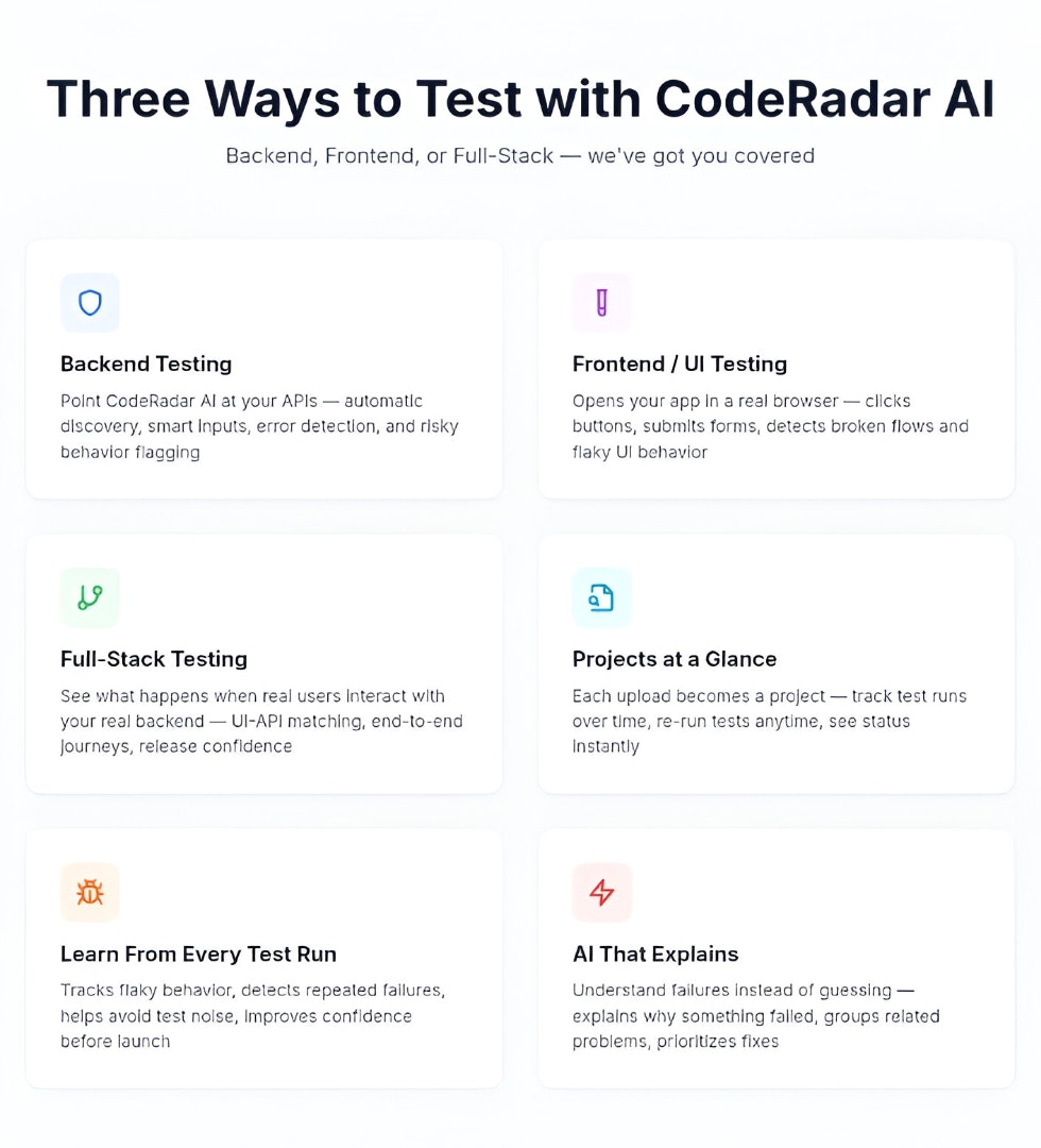 ## 概要 CodeRadarAIは高度なAIを活用し、本番投入前にコードを自動でスキャンして品質の問題・セキュリティの脆弱性・隠れたバグを検出します。継続的でリアルタイムなコード知能により、規...