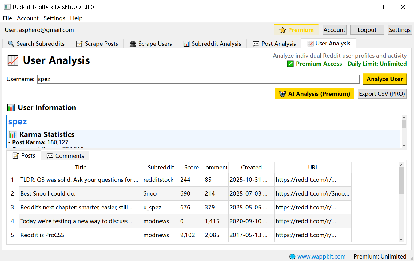 ## プロダクト概要 - Reddit データの抽出と分析をデスクトップで実現 - API 承認不要で迅速にデータへアクセス - サブレディット検索・投稿・ユーザーデータの一括抽出 - AI分析...