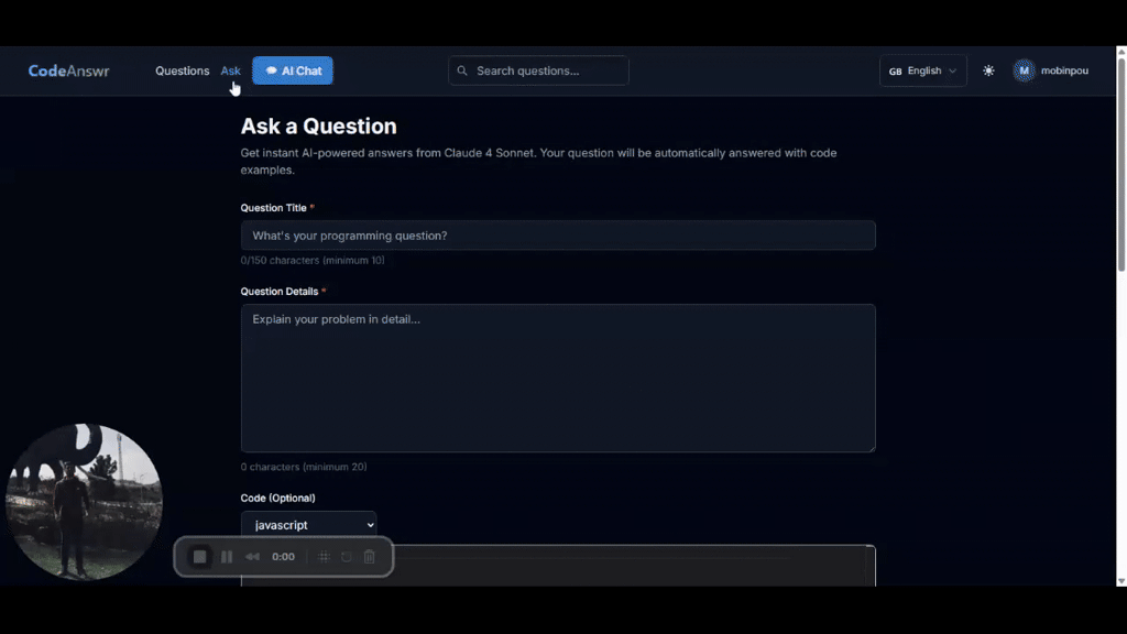 ## CodeAnswr — 公開知識とプライバシーを両立させるQ&Aプラットフォーム - 概要: AI チャットから得たQ&A を公開知識として再活用。投稿前にコードをクライアントサイドでス...
