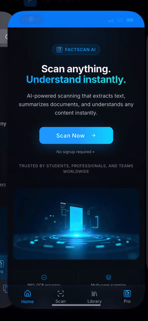 FactScan AIはブラウザ上で動作するAI搭載の文書スキャナー。写真やPDFをアップロードすると、OCRでテキストを瞬時に抽出し、要約・翻訳・高品質エクスポートを提供します。アプリのインス...