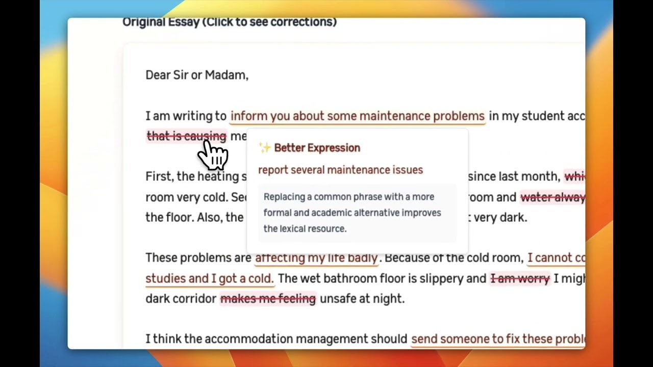 ## プロダクト概要 - 無料のAI IELTSライティング添削ツール。人間のような添削を実感でき、現役の先生が書いたかのようなフィードバックを即時に提供します。 - 文法・タスク達成・整合性を...