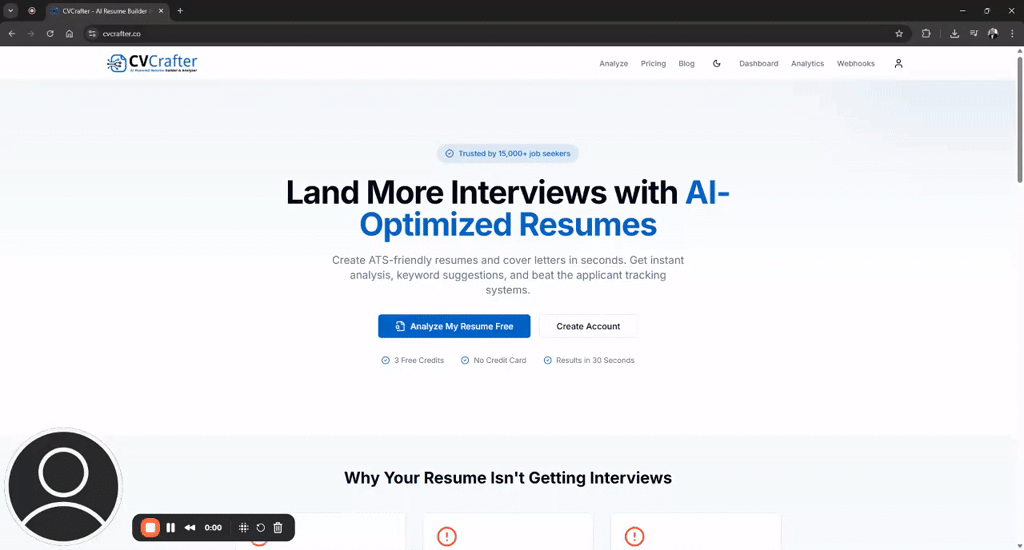 CVCrafterは、ATS対策が重要視される就職活動に特化したAI履歴書作成ツールです。履歴書を求人説明と照合して欠落キーワードを特定し、数秒で最適化版を生成します。主な特徴は、即時ATS適合...