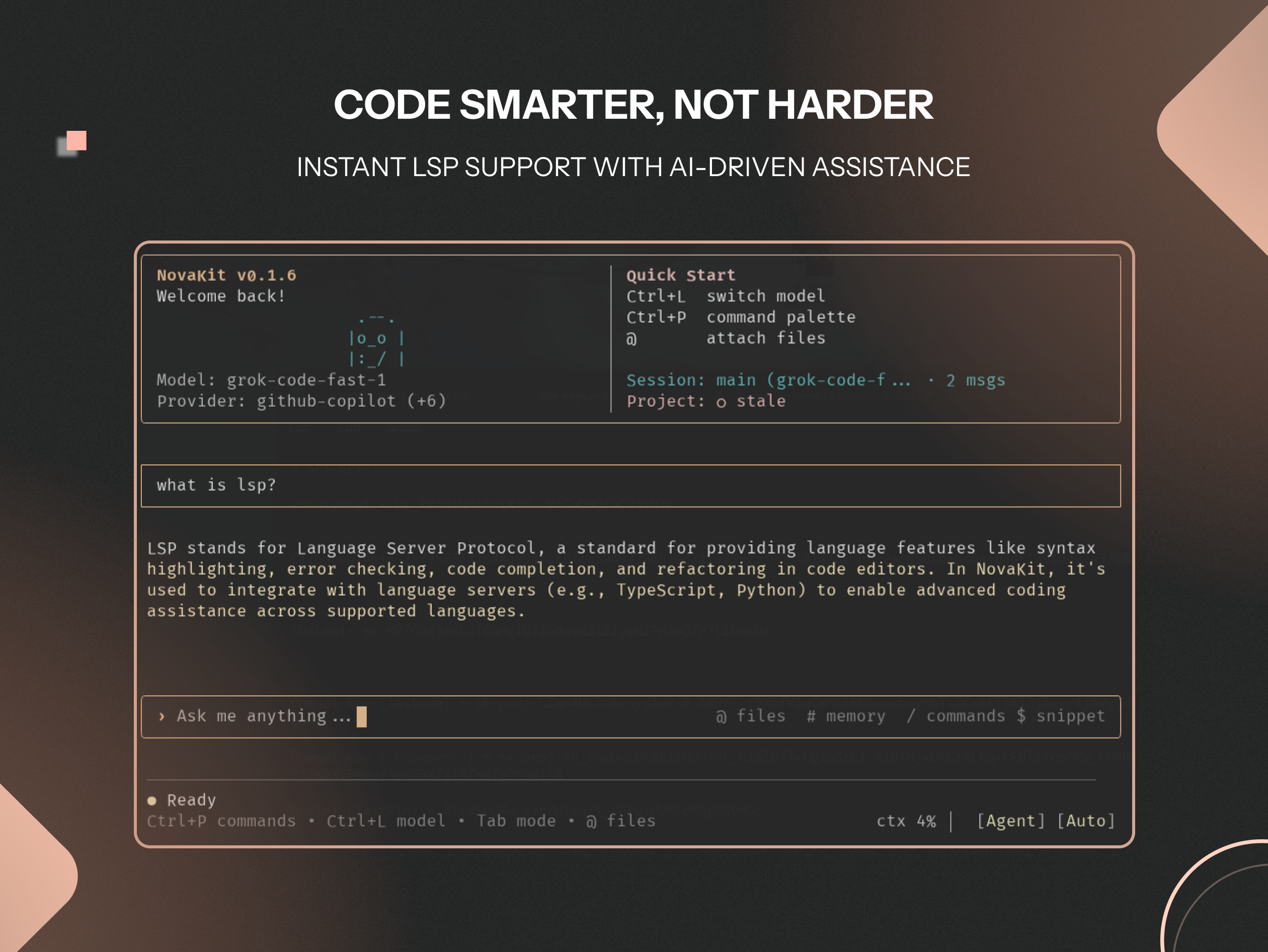 ## NovaKit CLIの概要 NovaKit CLIは端末内で動くAIコーディングエージェント。IDE不要でコード作成・編集・実行が自然言語で可能です。 ## 主な特徴 - 複数プロバイ...