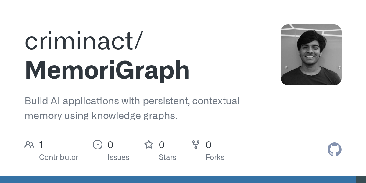 ## 概要 MemoriGraphは、AIアプリに高度な記憶機能を追加するオープンソースAPIです。Neo4jとGraphitiを基盤に、未構造化の会話を時間とともに進化する知識グラフへ変換しま...