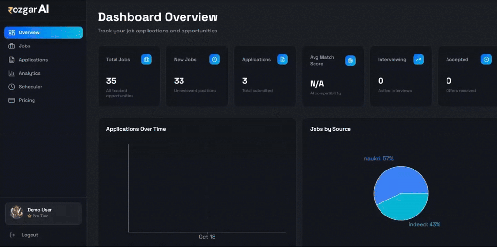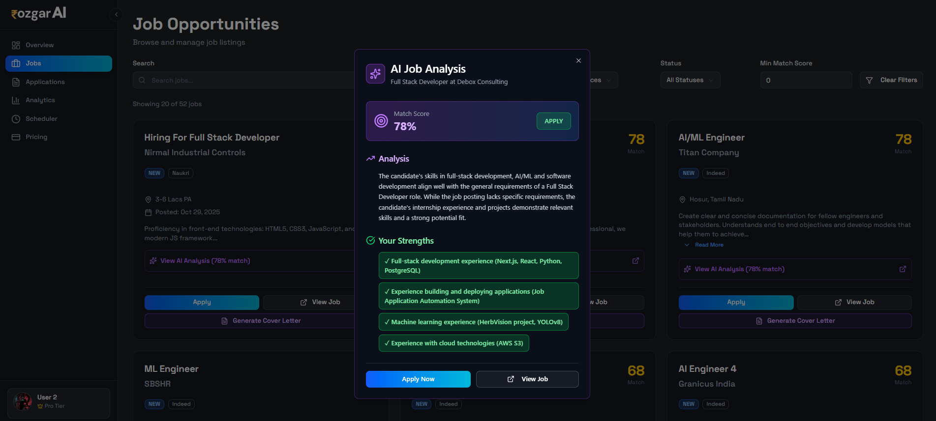 RozgarAI は、インド市場のIT人材向けに設計されたAIジョブ検索アシスタント。夜間に6つ以上の求人ボードをクロールし、履歴書と求人をAIで0-100点でマッチ付け、適合理由を説明します。...