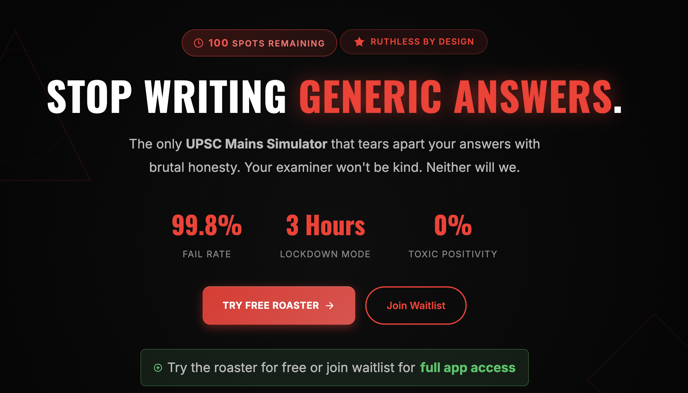 ## 概要 UPSC Mainsの実戦力を高める行動科学ベースの学習支援です。多くのアプリが情報を増やすのに対し、知っているのにやらないというギャップを埋め、習慣として実行を定着させます。 ##...