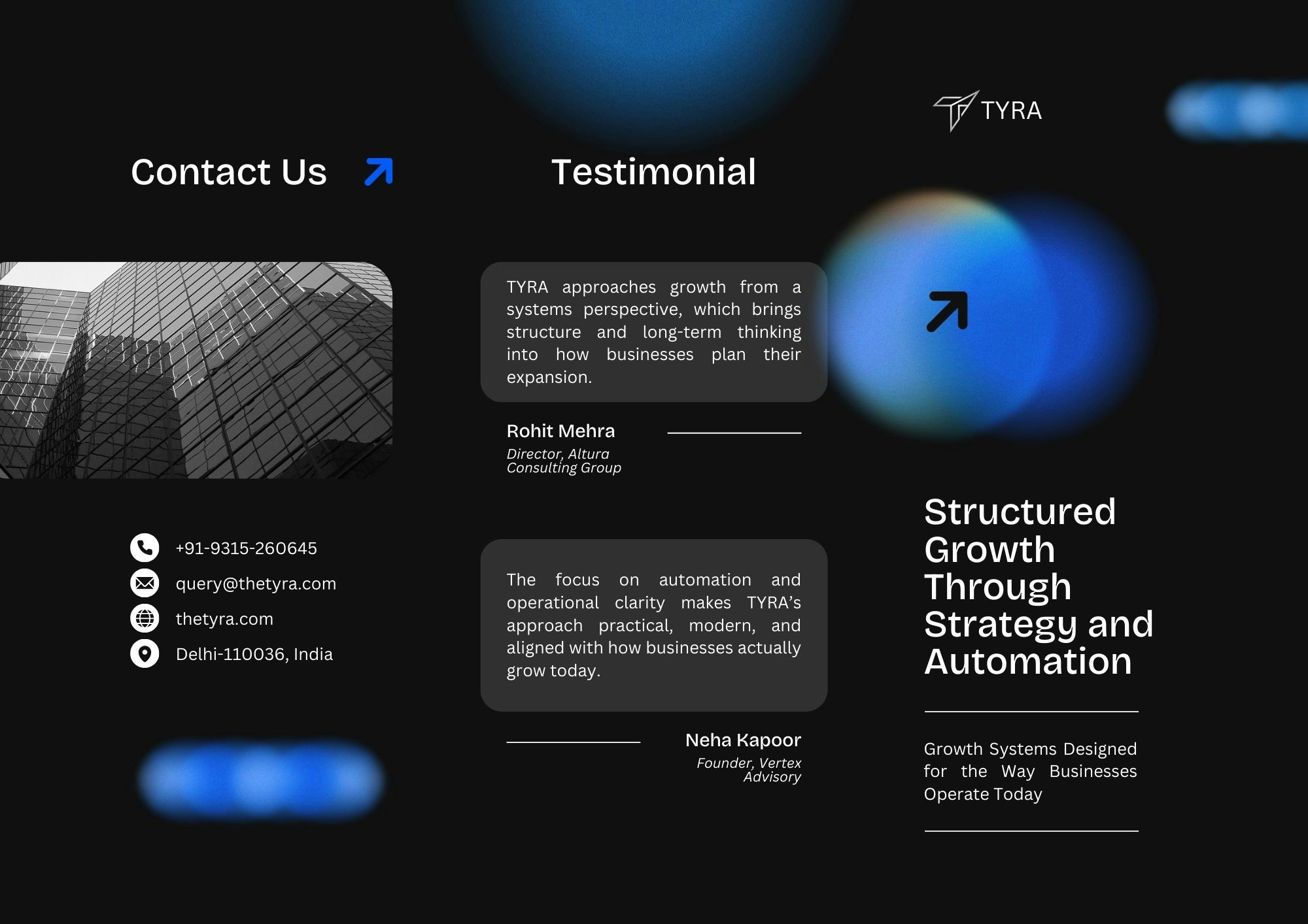 ## TYRAの概要 TYRA は創業者と成長中のチーム向けに、AI駆動の自動化と成長システムを提供します。手作業を減らし、運用に構造を与え、スケーリングを予測可能にします。ツール過多の課題を解...