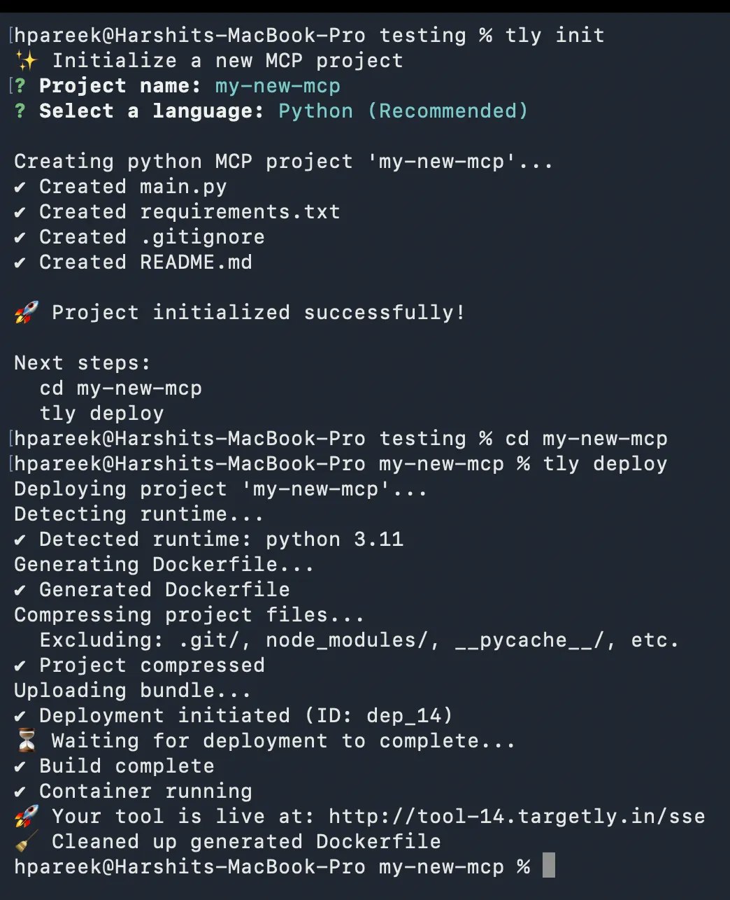 Targetlyは、MCPを数秒でデプロイできる軽量なCLIツールです。