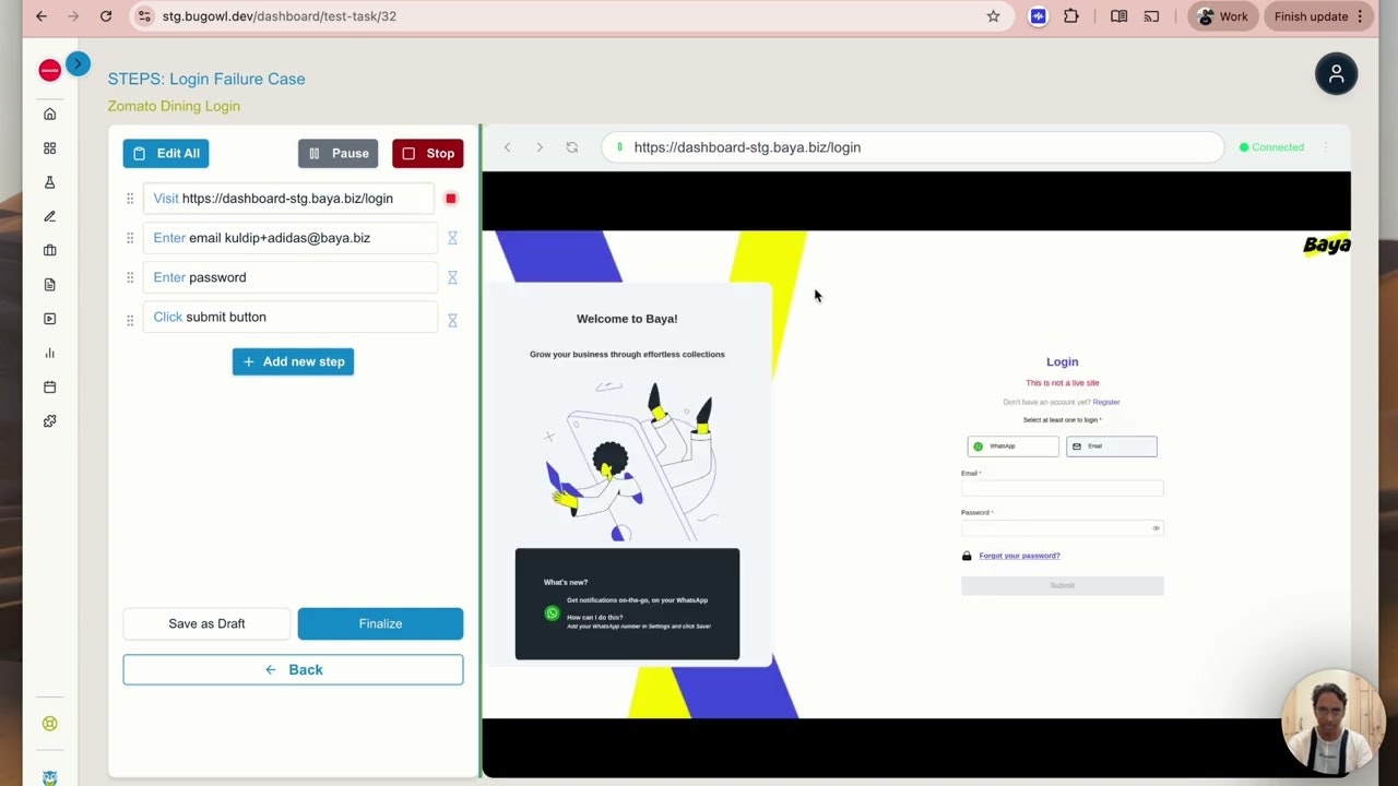 BugOwlは、自然言語でテストを作成できるAI搭載の自動化プラットフォーム。Webとモバイルのテストを一元管理し、作成・実行・結果の可視化を統合したワークフローを提供します。コード不要で手動テ...