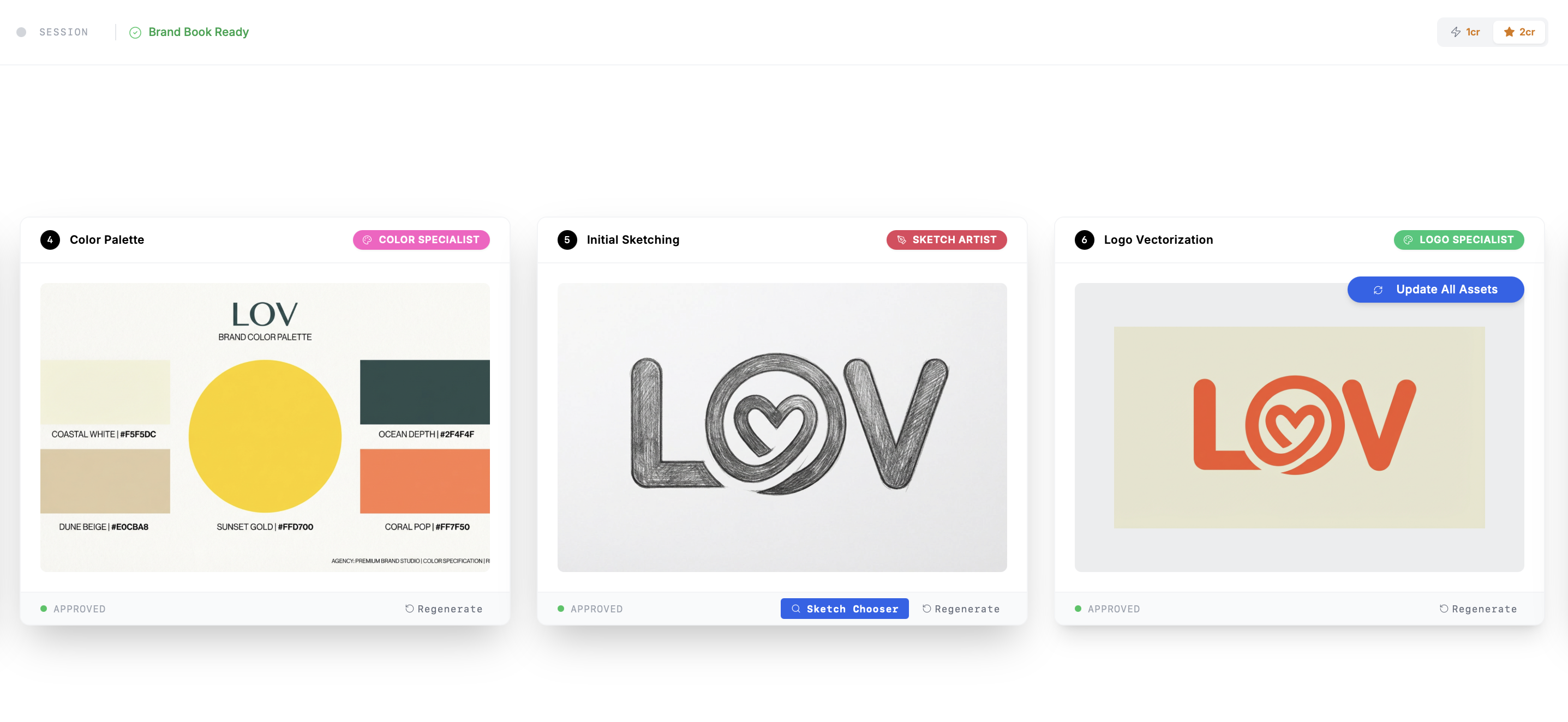 LumieraはAI搭載のブランディングスタジオ。仮想AIスペシャリストがデザイン、カラー、戦略、タイポグラフィをリアルタイムで協働し、数秒で完全なブランドアイデンティティを構築します。60秒未...