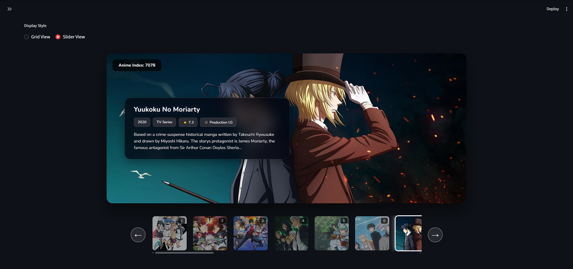 ## 概要 雰囲気ベースでアニメを提案する検索エンジン。タグ中心の従来手法を超え、HyDEを使う生成AIで「ネオンで染まる悲劇」などの雰囲気で作品を見つけます。デュアルモード(CPU軽量/GPU...