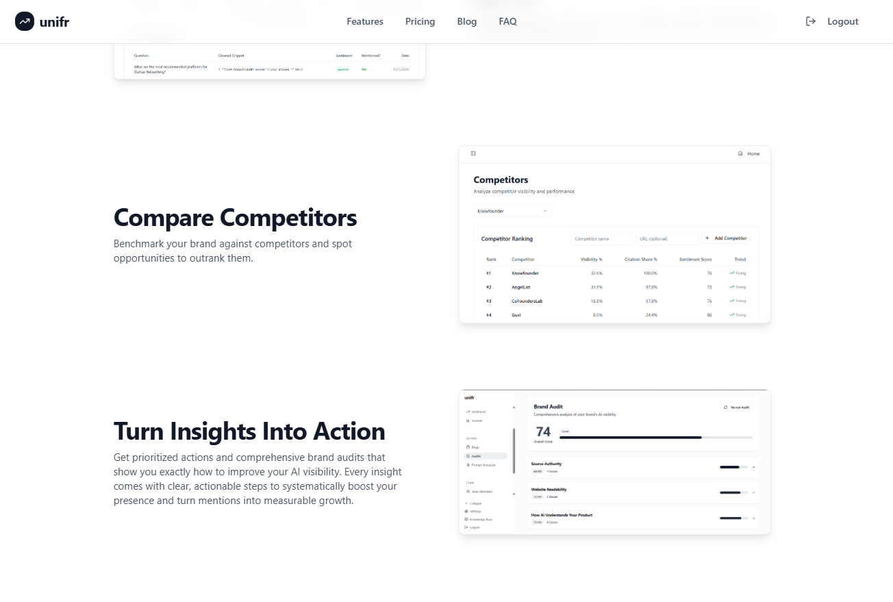 ## 概要 UniFRは、AI回答内でブランドの言及を増やすための可視化・最適化ツールです。AIディスカバリープラットフォーム(ChatGPT・Gemini・Claude等)上でブランドの現れ方...