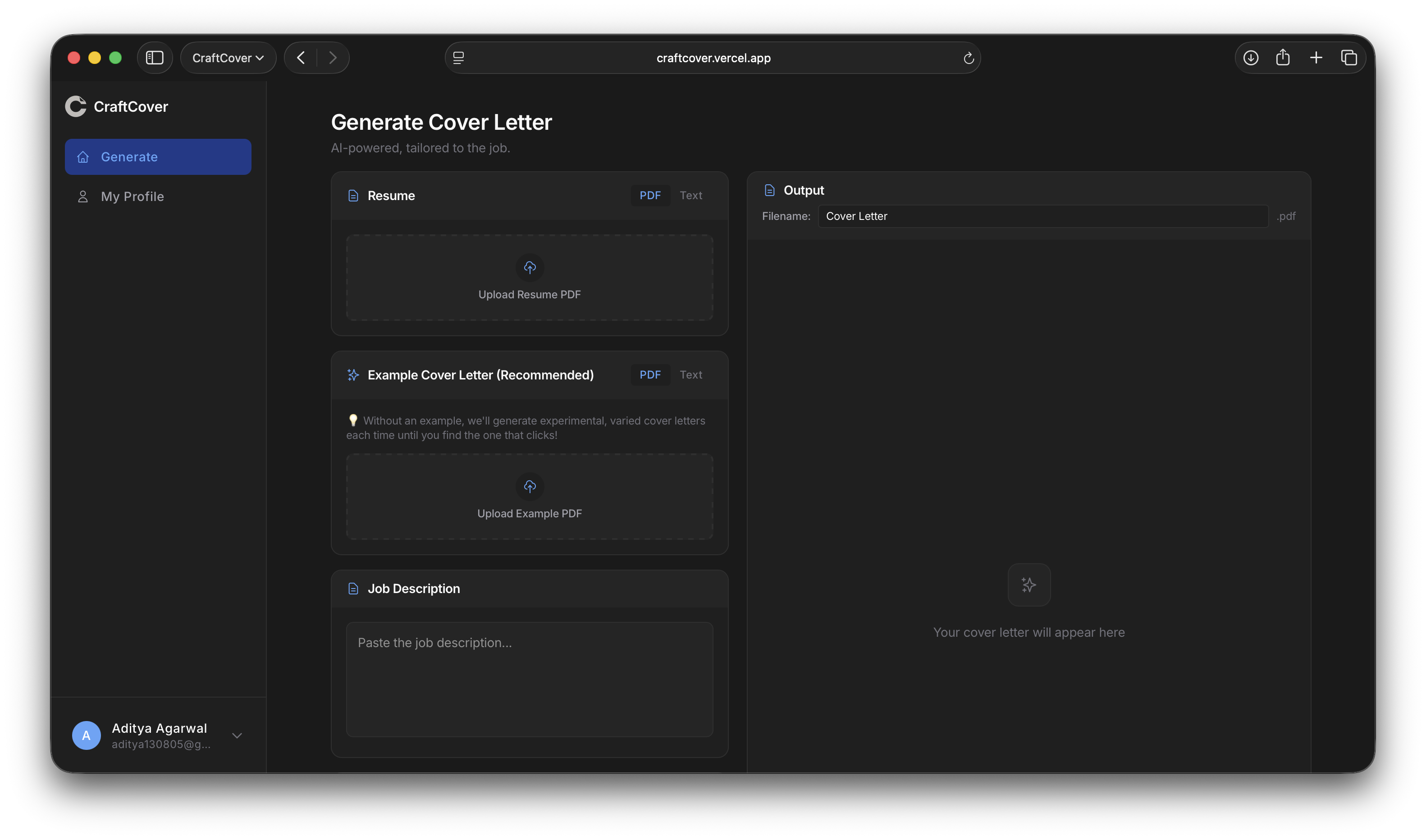 ## 概要 就職活動でのコピペ作業を減らす、無料のカバーレター生成ツール。履歴書と詳細を一度アップロードすれば、求人情報を貼るだけで生成される。過去の応募書類をアップロードして自分の文体を学習さ...