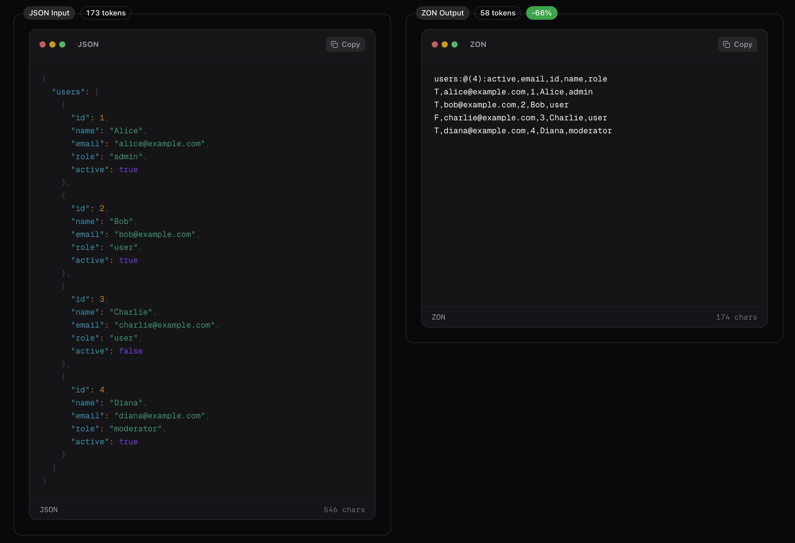## 概要 ZONはLLM向けに設計された、人間に読みやすくトークン効率の高いデータ形式です。JSON・YAML・TOONの優れた代替として、APIコストを30〜40%削減します。データは同じま...