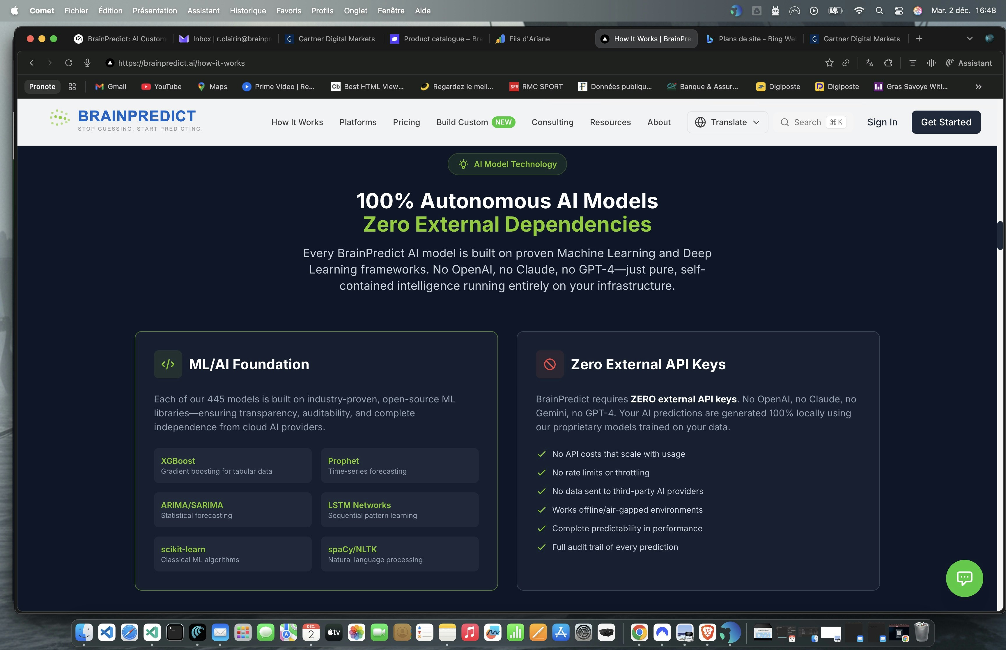 BrainPredictは、445の事前構築モデルを100%オンプレミスで実行できるエンタープライズAIプラットフォームです。データ露出ゼロを徹底し、クラウド依存を排除します。主な予測には売上予...
