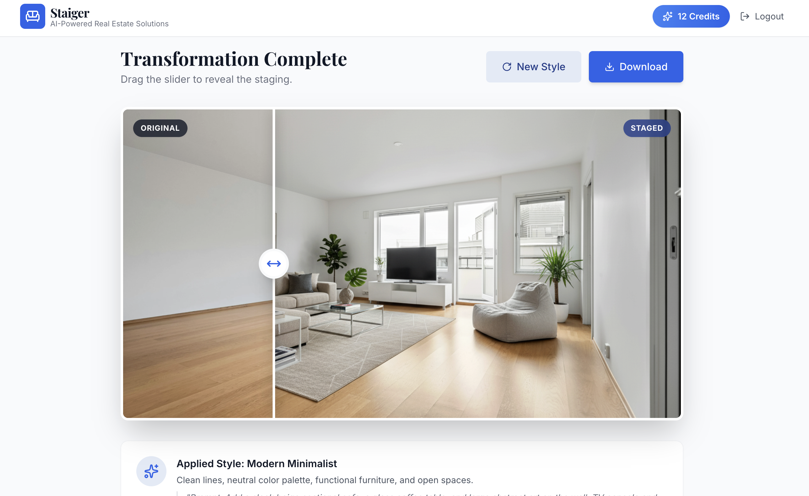 StaigerはAI搭載の室内デザインツールで、空室を即座に家具付きの空間へ変換します。写真とスタイル選択だけで数秒のフォトリアルなステージングを生成可能。3Dモデリング不要で誰でも使える点が強...