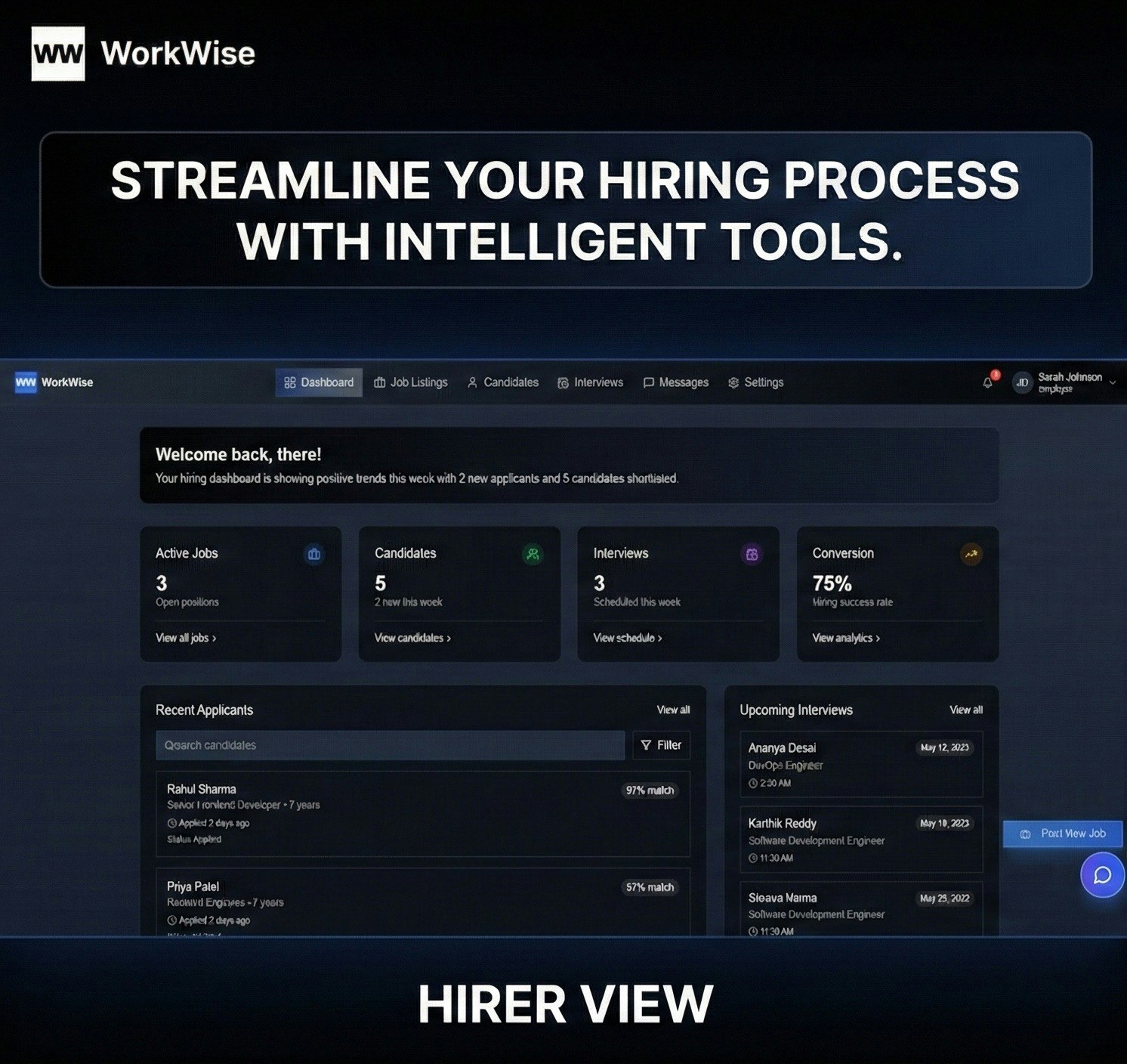 ## 概要 WorkWise は採用と求職活動を1つのエンドツーエンドプラットフォームに統合し、採用担当者と候補者の作業を1か所で完結させます。求人投稿・応募者スクリーニング・採用状況の追跡を1...